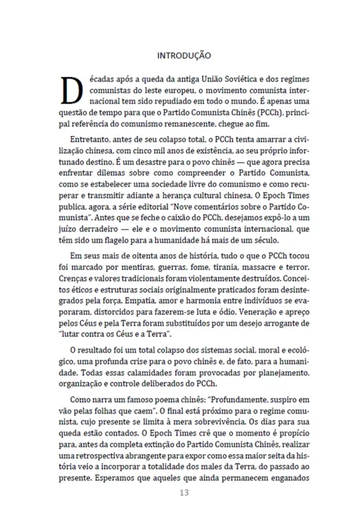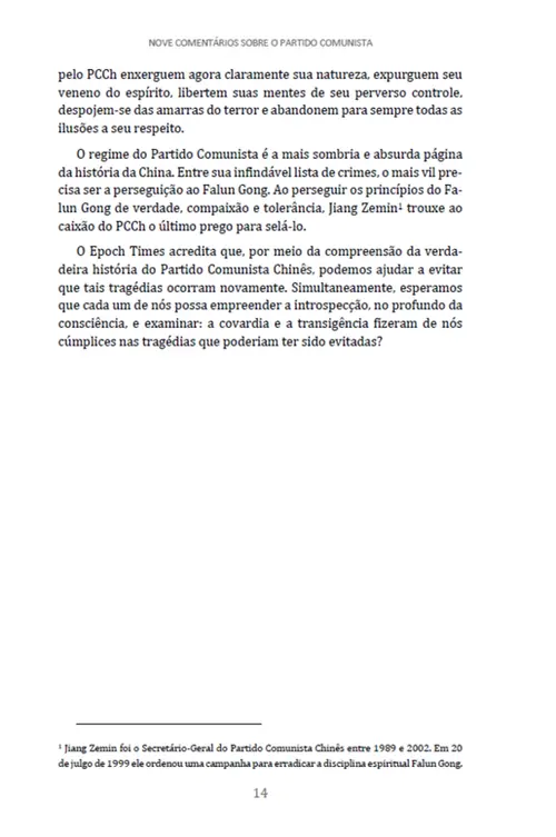 Celebrando 20 anos da publicação do livro que inspirou o maior movimento por direitos fundamentais de todos os tempos, o Epoch Times Brasil - filial brasileira do The Epoch Times - oferece agora ao público uma nova tradução revisada para o português, com notas de rodapé acrescentadas para facilitar a compreensão do leitor.