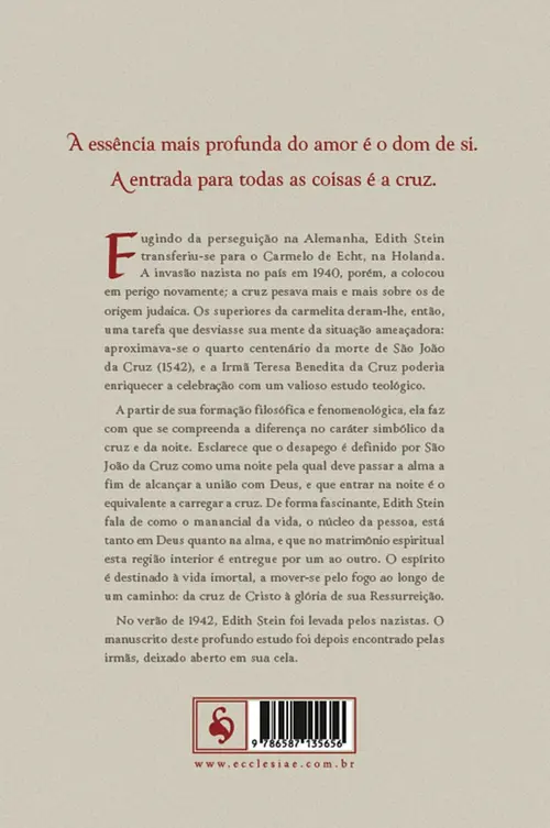 No verão de 1942, Edith Stein foi levada pelos nazistas. O manuscrito deste profundo estudo foi depois encontrado pelas irmãs, deixado aberto em sua cela.