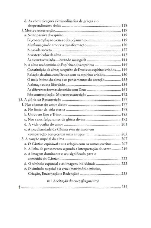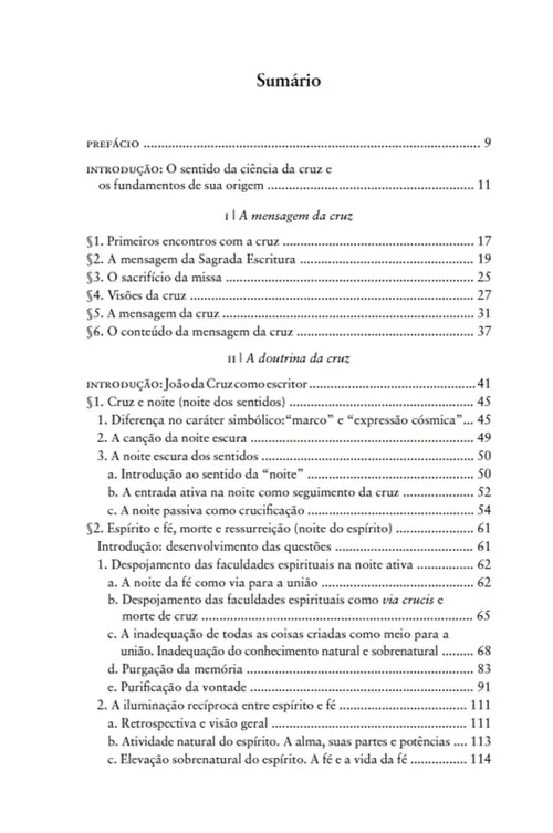A partir de sua formação filosófica e fenomenológica, ela faz com que se compreenda a diferença no caráter simbólico da cruz e da noite. Esclarece que o desapego é definido por São João da Cruz como uma noite pela qual deve passar a alma a fim de alcançar a união com Deus, e que entrar na noite é o equivalente a carregar a cruz. De forma fascinante, Edith Stein fala de como o manancial da vida, o núcleo da pessoa, está tanto em Deus quanto na alma, e que no matrimônio espiritual esta região interior é entregue por um ao outro. O espírito é destinado à vida imortal, a mover-se pelo fogo ao longo de um caminho: da cruz de Cristo à glória de sua Ressurreição.
