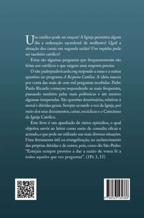 Um católico pode ser maçon? A Igreja permitirá algum dia a ordenação sacerdotal de mulheres? Qual a situação dos casais em segunda união? Um espírita pode ser também católico? Estas são algumas perguntas que frequentemente são feitas aos católicos e que exigem uma resposta precisa. O site padrepauloricardo.org responde a essas e a outras questões no programa A Resposta Católica. A ideia nasceu por conta das mais de cem mil perguntas recebidas. Padre Paulo Ricardo começou respondendo as mais frequentes, passando também pelas mais polêmicas e até mesmo algumas inesperadas. São questões doutrinárias, relativas à moral e dúvidas gerais. Sempre ecoando a voz da Igreja, por meio dos seus documentos, cartas, encíclicas e o Catecismo da Igreja Católica.