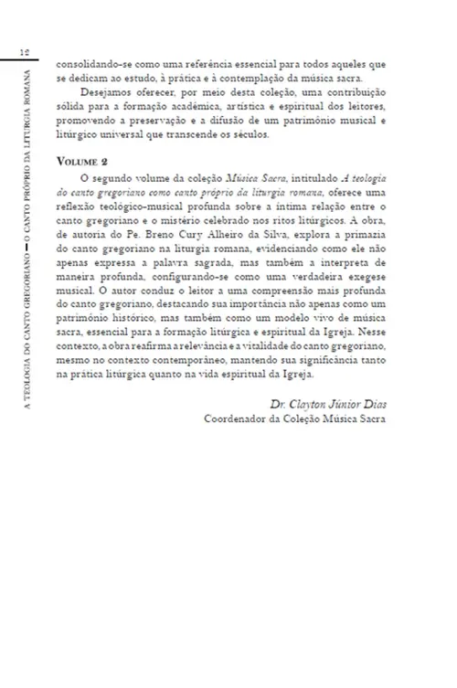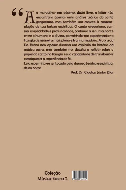 Ao mergulhar nas páginas deste livro, o leitor não encontrará apenas uma análise teórica do canto gregoriano, mas também um convite à contemplação de sua beleza espiritual. O canto gregoriano, com sua simplicidade e profundidade, continua a ser uma ponte entre o humano e o divino, permitindo-nos experimentar a liturgia de maneira mais plena e transformadora. A obra do Pe. Breno não apenas ilumina um capítulo da história da música sacra, mas também nos desafia a refletir sobre o papel do canto na liturgia e sua capacidade de transformar e enriquecer a experiência de fé.