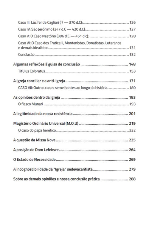 Através de um estudo criterioso, esta obra aborda também questões contemporâneas, como a Missa Nova, o Estado de Necessidade e o polêmico debate sobre a possibilidade de um papa herético. Enfrentando diretamente as críticas e confusões que cercam a Igreja conciliar e as teorias sedevacantistas, o livro permite compreender e viver a fé católica em tempos de crise.