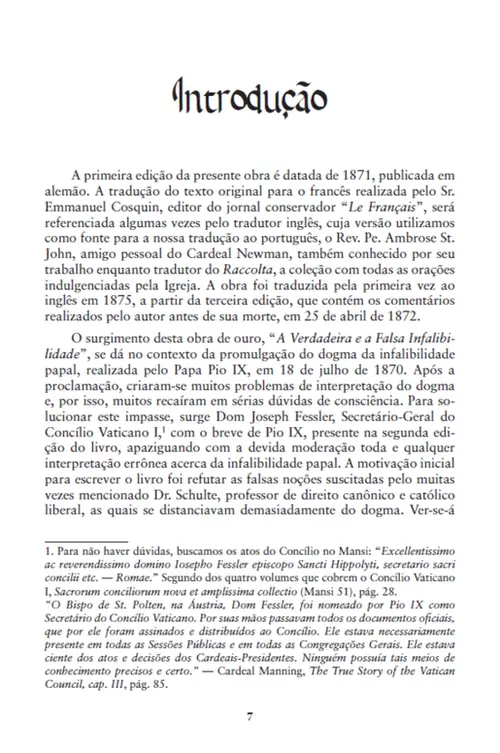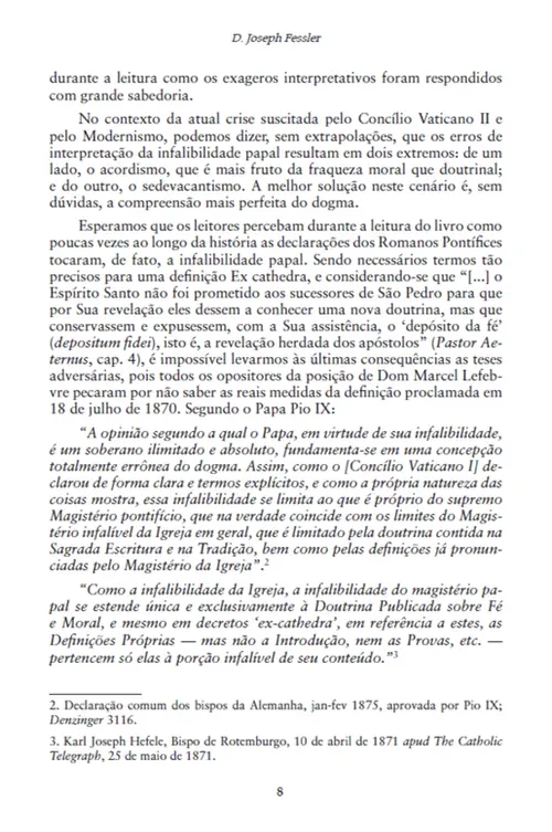 Com base na definição dogmática do Concílio Vaticano I, o autor explora a doutrina e as proposições papais, mergulhando em questões polêmicas como as relações entre o papado e o Estado, o tratamento de hereges, e as complexas implicações práticas da autoridade papal. A obra ainda ilumina casos históricos emblemáticos – de Santo Hipólito e Tertuliano a Dom Marcel Lefebvre – para examinar como a Igreja lidou com tensões internas e externas no decorrer dos tempos.