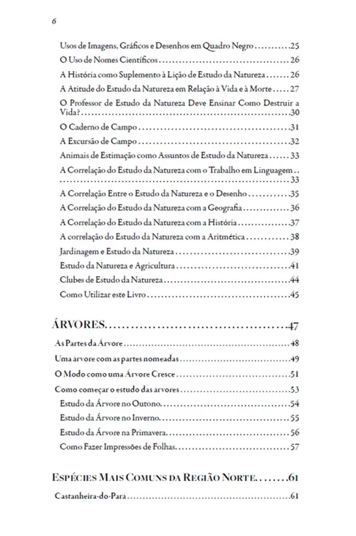 Este livro não possui ilustrações, ele é usado como um guia de estudos a respeito das árvores e da natureza, mas o livro acompanha um Guia de Observação de Àrvores com imagens organizado por regiões do Brasil com flores/frutos que pode ser utilizado para o tempo de exploração na natureza .