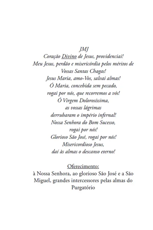 O livro ainda apresenta uma breve seleta de orações para sufragar as almas que padecem no Purgatório