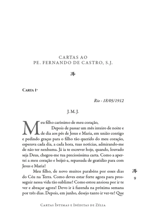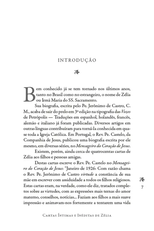 Do epistolário reunido de Zélia Magalhães, ou Irmã Maria do Santíssimo Sacramento, restaram salvas do sincero e austero desprendimento de sua autora, cerca de 400 cartas, trocadas entre a mãe e religiosa e seus filhos e amigos.
