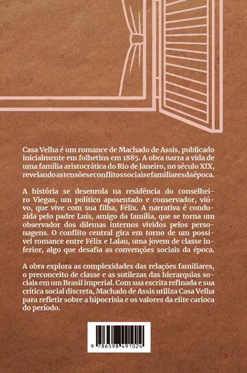 Casa Velha é um romance de Machado de Assis, publicado inicialmente em folhetins em 1885. A obra narra a vida de uma família aristocrática do Rio de Janeiro, no século XIX, revelando as tensões e conflitos sociais e familiares da época.