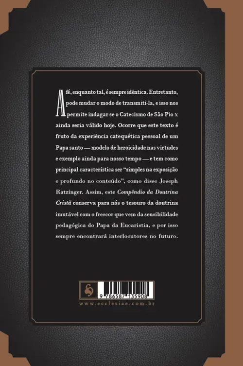 A fé, enquanto tal, é sempre idêntica. Entretanto, pode mudar o modo de transmiti-la, e isso nos permite indagar se o Catecismo de São Pio x ainda seria válido hoje. Ocorre que este texto é fruto da experiência catequética pessoal de um Papa santo — modelo de heroicidade nas virtudes e exemplo ainda para nosso tempo — e tem como principal característica ser “simples na exposição e profundo no conteúdo”, como disse Joseph Ratzinger. Assim, este Compêndio da Doutrina Cristã conserva para nós o tesouro da doutrina imutável com o frescor que vem da sensibilidade pedagógica do Papa da Eucaristia, e por isso sempre encontrará interlocutores no futuro.