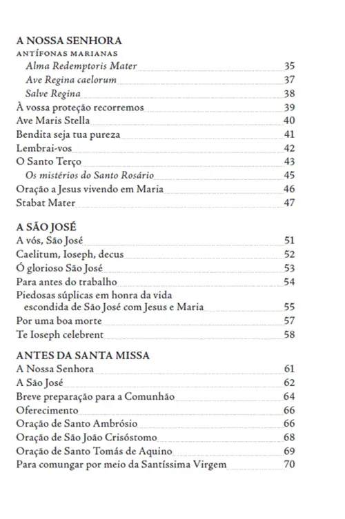 Devotionarium é um compilado de orações e devoções do tesouro da Igreja para acompanhar o fiel católico nos diversos momentos do dia e nas mais variadas ocasiões: ele contém as principais orações da fé católica em latim e português, orações da manhã e da noite, a Nossa Senhora, a São José, orações para antes da Santa Missa, para a ação de graças, hinos, ladainhas e preces para diversas necessidades.