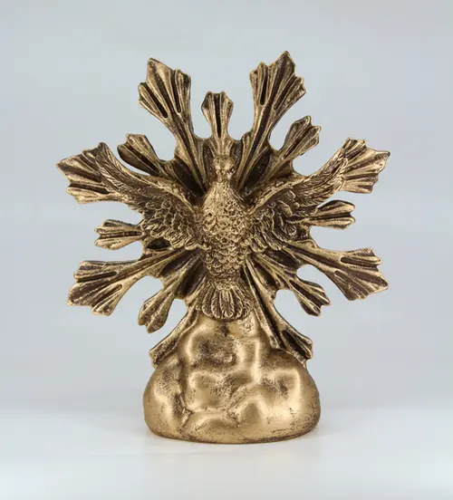 A representação do Divino Espírito Santo como uma pomba vem do Novo Testamento. Mais explicitamente da ocasião do batismo de Jesus. Nesta passagem, o Divino Espírito Santo "apareceu em forma corpórea como uma pomba e uma voz veio do céu dizendo: este é meu Filho muito amado, em quem coloco toda a minha afeição". Os quatro Evangelhos relatam o fato. Por isso a pomba é usada para representar o Divino Espírito Santo. Em algumas representações do Divino Espírito Santo há uma auréola de três raios saindo da cabeça da pomba. Este símbolo significa que o Espírito santo faz parte da Santíssima Trindade. Observe que na passagem do batismo de Jesus citada acima, temos o Pai, o Filho e o Espírito Santo, todos se manifestando juntos e se revelando como Trindade à humanidade.