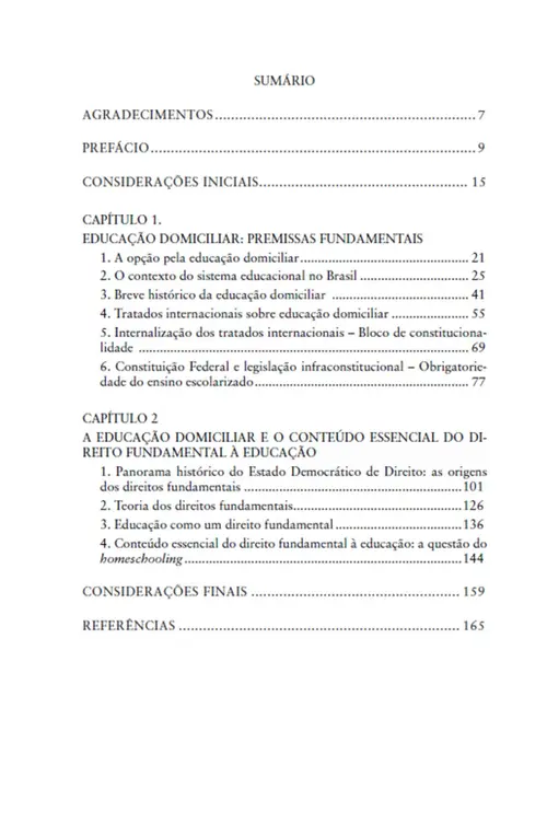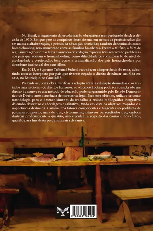 Neste opúsculo, inicia explicitando as premissas fundamentais da educação domiciliar, faz um breve histórico do homeschooling, sua opção, seu contexto no sistema educacional brasileiro, enveredando pelos tratados internacionais e a sua recepção no sistema constitucional brasileiro. Por fim, entra na discussão dos direitos fundamentais e aplica a educação domiciliar.
