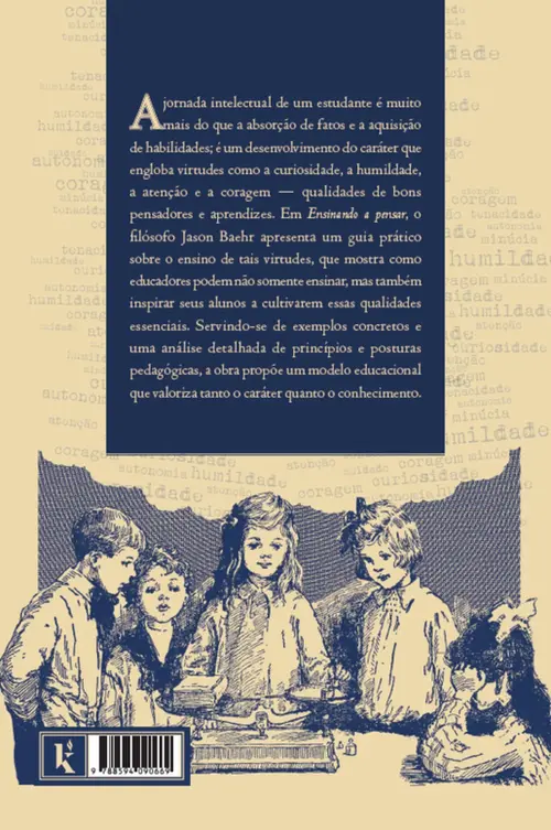 A jornada intelectual de um estudante é muito mais do que a absorção de fatos e a aquisição de habilidades; é um desenvolvimento do caráter que engloba virtudes como a curiosidade, a humildade, a atenção e a coragem — qualidades de bons pensadores e aprendizes. Em Ensinando a pensar, o filósofo Jason Baehr apresenta um guia prático sobre o ensino de tais virtudes, que mostra como educadores podem não somente ensinar, mas também inspirar seus alunos a cultivarem essas qualidades essenciais. Servindo-se de exemplos concretos e uma análise detalhada de princípios e posturas pedagógicas, a obra propõe um modelo educacional que valoriza tanto o caráter quanto o conhecimento.
