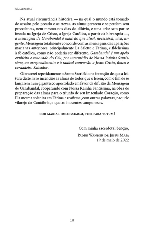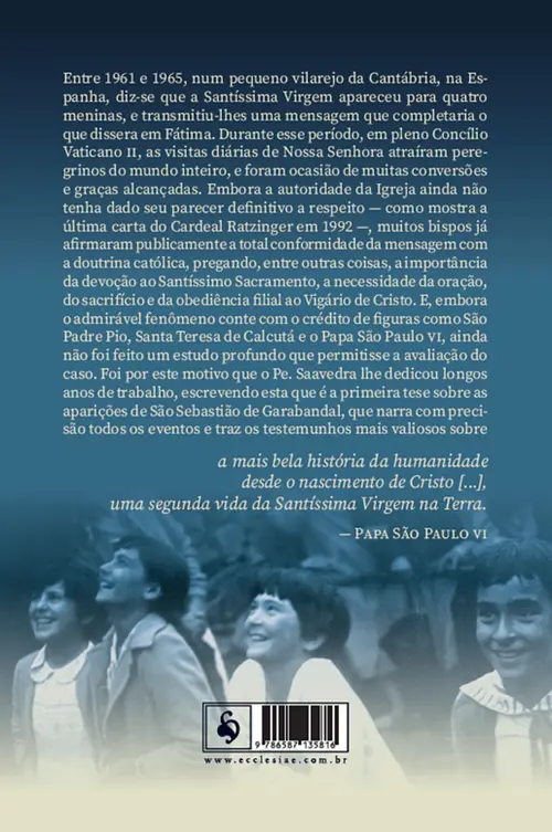 E, embora o admirável fenômeno conte com o crédito de figuras como São Padre Pio, Santa Teresa de Calcutá e o Papa São Paulo VI, ainda não foi feito um estudo profundo que permitisse a avaliação do caso. Foi por este motivo que o Pe. Saavedra lhe dedicou longos anos de trabalho, escrevendo esta que é a primeira tese sobre as aparições de São Sebastião de Garabandal, que narra com precisão todos os eventos e traz os testemunhos mais valiosos sobre