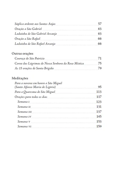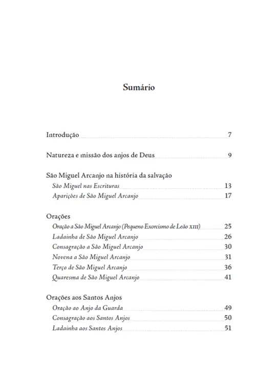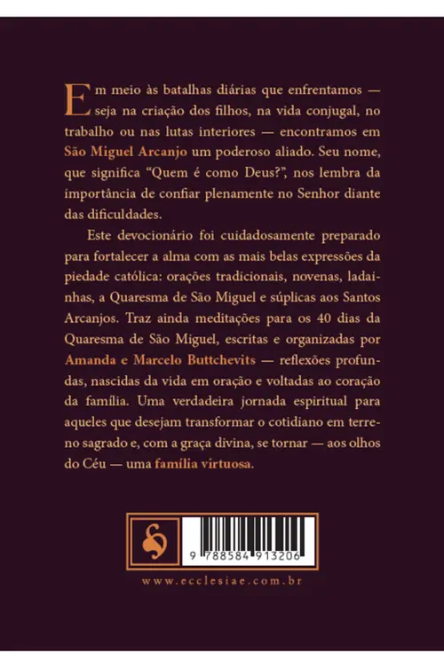 Este devocionário é um convite a unir-se à milícia do Arcanjo e confiar em sua proteção: primeiro, conhecendo a missão dos anjos de Deus e a história e aparições de São Miguel; em seguida, através das orações, novena, quaresma, ladainhas dos Santos Anjos e de São Miguel. As preces aqui reunidas fortalecerão a fé e a piedade do leitor, alimentando a confiança jubilosa de contar com o auxílio do líder dos exércitos do Senhor.