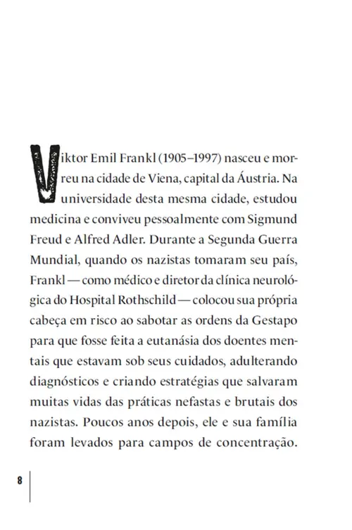 Neste pequeno livro, pretendo resumir o mínimo a respeito da biografia deste grande homem. Meu desejo é que este material sirva como um ponto de partida para seu estudo sobre a vida e a obra de Viktor Frankl mas, sobretudo, que estas páginas o conduzam por esta jornada incrível de busca pelo sentido e por uma vida mais plena.
