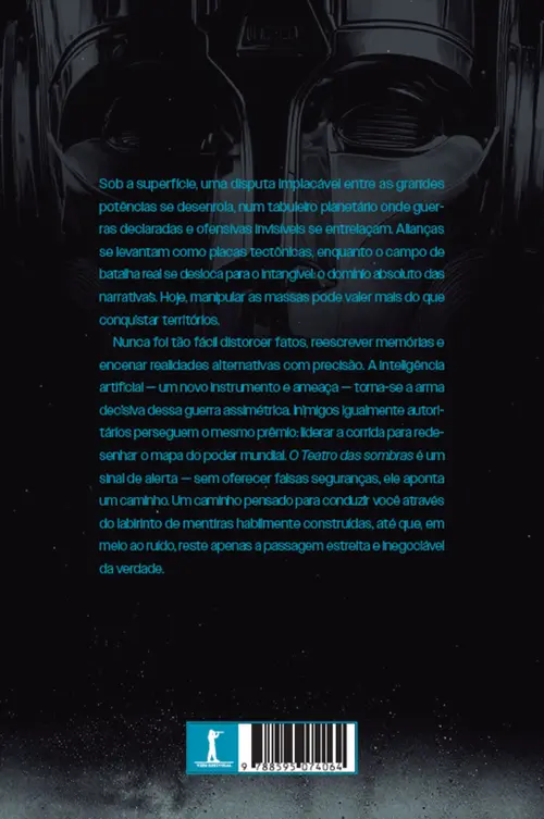 A inteligência artificial — um novo instrumento e ameaça — torna-se a arma decisiva dessa guerra assimétrica. Inimigos igualmente autoritários perseguem o mesmo prêmio: liderar a corrida para redesenhar o mapa do poder mundial. O Teatro das sombras é um sinal de alerta — sem oferecer falsas seguranças, ele aponta um caminho. Um caminho pensado para conduzir você através do labirinto de mentiras habilmente construídas, até que, em meio ao ruído, reste apenas a passagem estreita e inegociável da verdade.