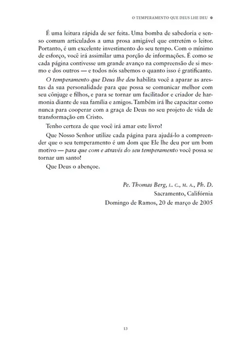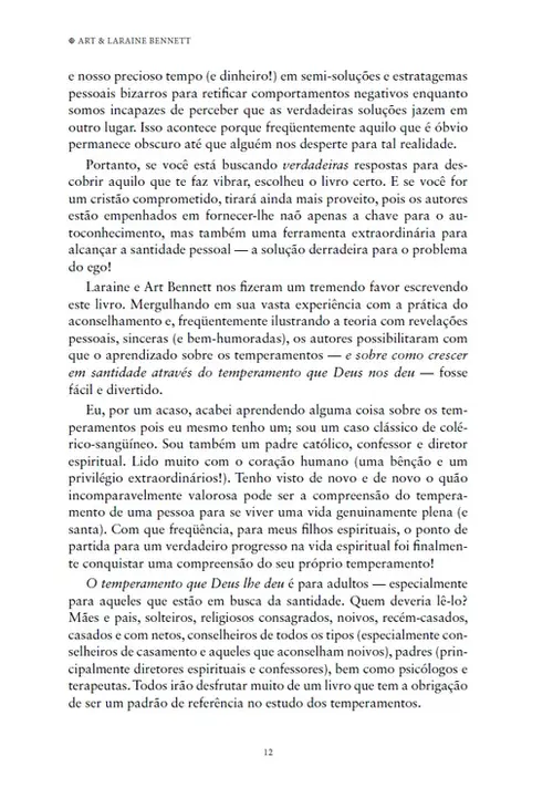 Art e Laraine Bennett, baseados em sua vasta experiência com aconselhamento de casais e em sua vivência cristã, facilitaram para o público católico a compreensão da teoria milenar dos quatro temperamentos humanos e das maneiras pelas quais se pode crescer em santidade através do temperamento que Deus deu a cada um.