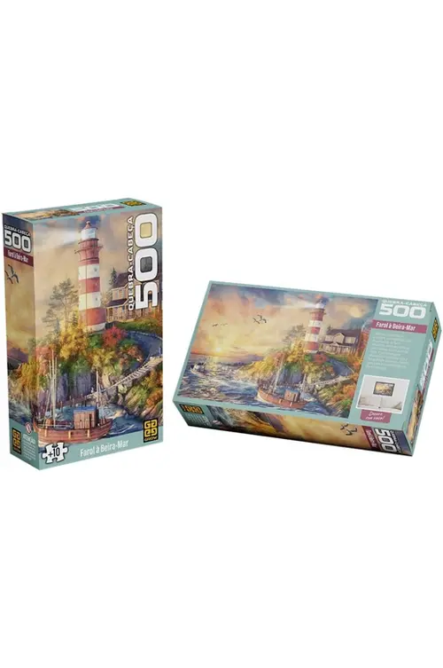 SinopseQuebra-cabeça Cartonado, Grow, Farol a Beira Mar, 500 Peças