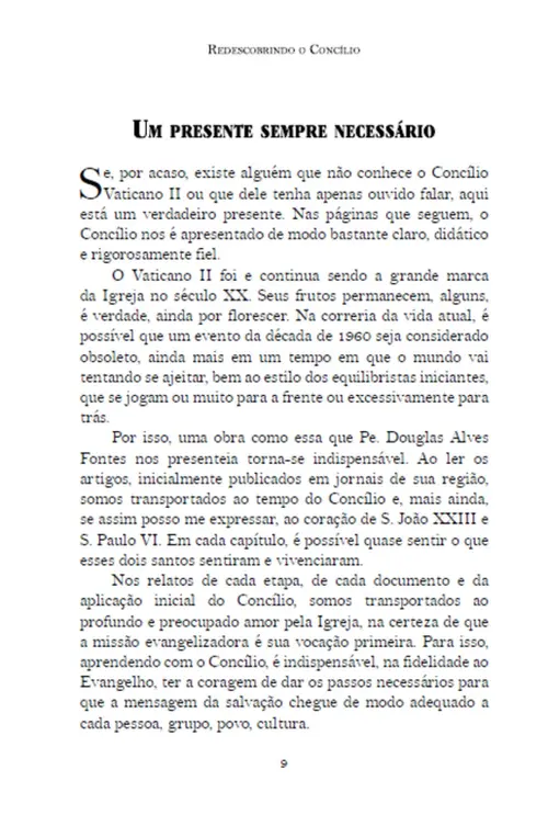 Se, por acaso, existe alguém que não conhece o Vaticano II ou que dele tenha apenas ouvido falar, aqui está um verdadeiro presente. Nas páginas que seguem, o Concílio nos é apresentado de modo bastante claro, didático e rigorosamente fiel.