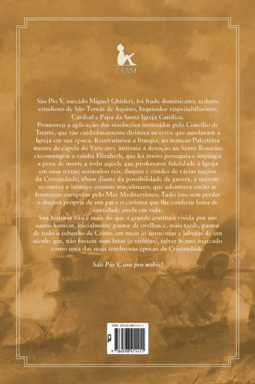 São Pio V, nascido Miguel Ghisleri, foi frade dominicano, ardente estudioso de São Tomás de Aquino, Inquisidor respeitabilíssimo, Cardeal e Papa da Santa Igreja Católica.Como servo dos servos de Deus, promoveu a aplicação das resoluções instituídas pelo Concílio de Trento, que tão cuidadosamente dirimira os erros que assolavam a Igreja em sua época. Reestruturou a liturgia, nomeando Palestrina mestre de capela do Vaticano; instituiu ardentemente a devoção ao Santo Rosário; excomungou a rainha Elizabeth, que há muito perseguia e impingia a pena de morte a todo aquele que professasse fidelidade à Igreja em suas terras; estimulou reis, duques e condes de várias nações da Cristandade, tíbios diante da possibilidade da guerra, a unirem-se contra o inimigo comum muçulmano, que então adentrava as fronteiras européias pelo Mar Mediterrâneo. Tudo isso sem perder a doçura própria de um pai e o carisma que lhe conferiu fama de santidade ainda em vida.
