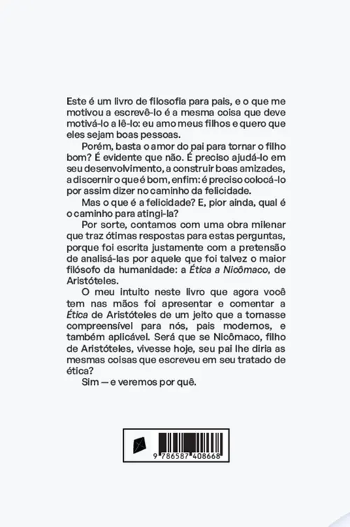 O meu intuito neste livro que agora você tem nas mãos foi apresentar e comentar a Ética de Aristóteles de um jeito que a tornasse compreensível para nós, pais modernos, e também aplicável. Será que se Nicômaco, filho de Aristóteles, vivesse hoje, seu pai lhe diria as mesmas coisas que escreveu em seu tratado de ética?