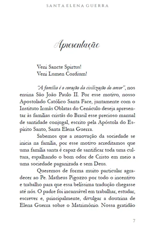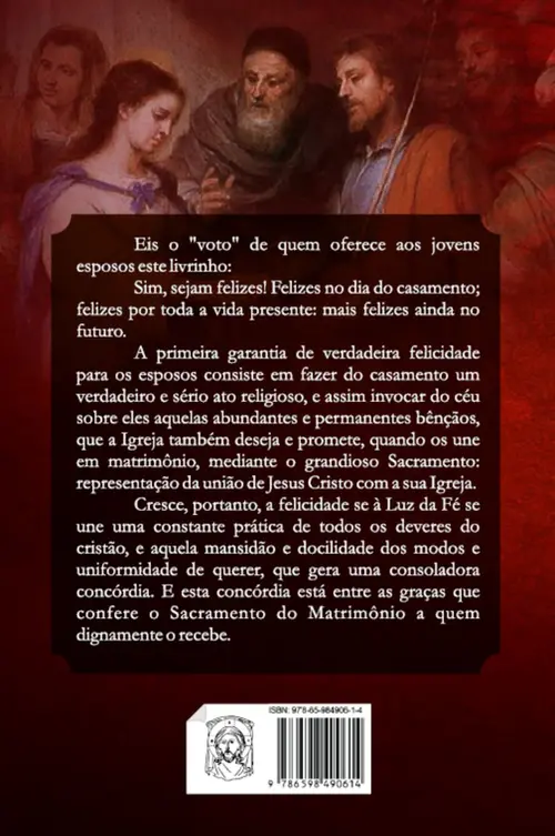 Os bons casais, em cujas mãos chegar este livrinho, guardem bem de não ser como aqueles desaconselhados, que chegam ao casamento privados da graça de Deus, isto é, com a negra mancha do pecado sobre a alma, e assim acompanhados pelo demônio, ao invés dos Anjos do Paraíso! Quais bênçãos poderá receber aos pés do altar, quem é inimigo de Deus; quem transforma um Sacramento em sacrilégio?...