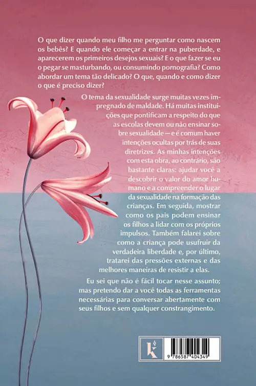 O tema da sexualidade surge muitas vezes impregnado de maldade. Há muitas instituições que pontificam a respeito do que as escolas devem ou não ensinar sobre sexualidade — e é comum haver intenções ocultas por trás de suas diretrizes. As minhas intenções com esta obra, ao contrário, são bastante claras: ajudar você a descobrir o valor do amor humano e a compreender o lugar da sexualidade na formação das crianças. Em seguida, mostrar como os pais podem ensinar os filhos a lidar com os próprios impulsos. Também falarei sobre como a criança pode usufruir da verdadeira liberdade e, por último, tratarei das pressões externas e das melhores maneiras de resistir a elas.