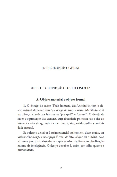 Todo homem, diz Aristóteles, tem o desejo natural de saber; isto é, o desejo de saber é inato. Manifesta-se já na criança através dos insistentes “por quê?” e “como?”. O desejo de saber é o princípio das ciências, cuja finalidade primeira não é dar ao homem meios de agir sobre a natureza, e, sim, satisfazer-lhe a curiosidade natural.