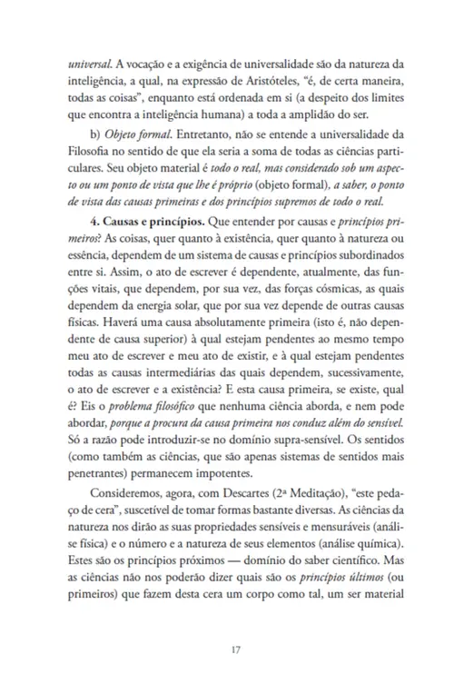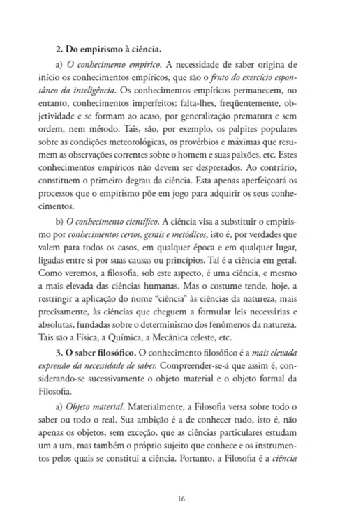 Pelo que precede, vê-se que a Filosofia é a mais elevada e a mais perfeita das ciências, primeiro porque é perfeitamente racional ou sistemática, enquanto visa a descobrir as causas e os princípios primeiros; segundo, porque ela dispõe de um método rigoroso, apropriado ao seu objeto formal. As ciências da natureza propõem-se apenas a estabelecer relações de conhecimento mensurável e concreto. Ao fazer abstração do problema da natureza real das coisas, tais ciências consideram (ao menos explicitamente) apenas as relações das coisas entre si, no universo onde nossos sentidos as apreendem. Elas se desenvolvem, ademais, numa direção em que não têm de se preocupar com a natureza do mundo, nem com a causa real daquilo que observam. Por conseguinte, elas alcançam apenas uma inteligibilidade (ou explicação) relativa, provisória e simbólica. A Filosofia, ao contrário, pelos seus métodos próprios, visa à explicação ou inteligibilidade absoluta, definitiva e própria de todo o real. É, portanto, a ciência por excelência.